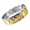 Anyaga: nemesacél (grade 316L) 3mikron vastagságú arannyal és ezüsttel bevonva Hosszúsága: 19.00cm Szélessége: 8.58mm Erőssége: 5000 gauss mágnesenként Mágnesek: 27db Súly: 31.50gr